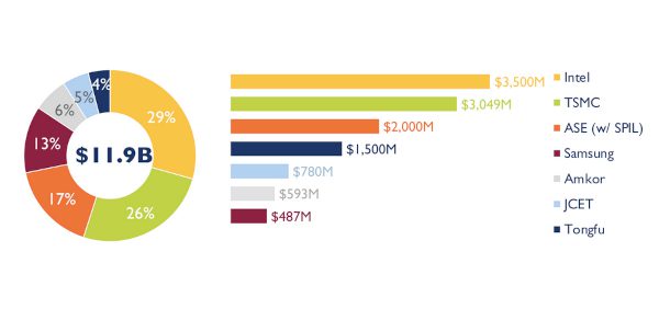 The other leader is foundry TSMC, which spend US$3.05 billion on packaging capex in 2021.