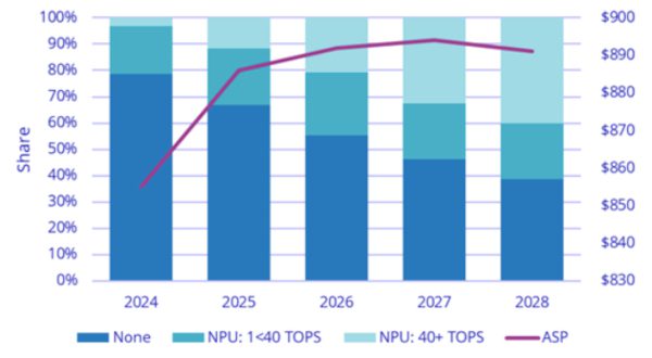 Global desktop and notebook computer market share by NPU performance. Source: IDC.