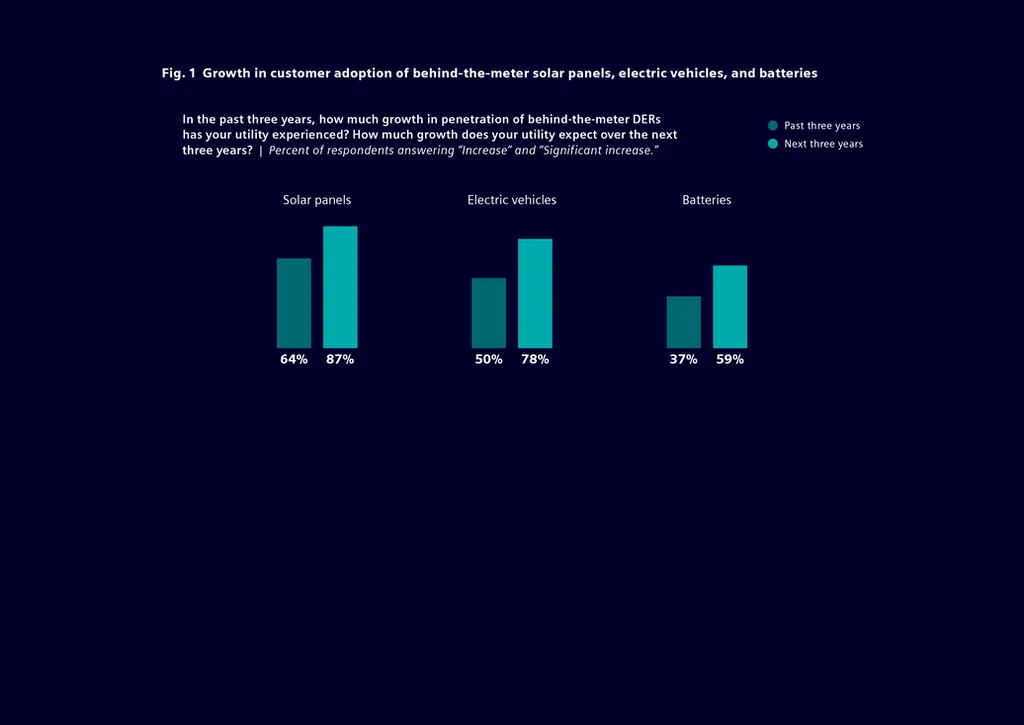 However, according to the study, behind the meter visibility is a challenge in designing cost-effective programs and monitoring. At least half of utilities surveyed have experienced an increase in the adoption of solar panels (64%) and electric vehicles (50%) over the past three years. Batteries are expected to gain popularity with over half (59%) of respondents expecting increased penetration in the next three years.