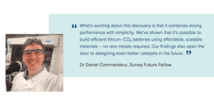 Using a low cost catalyst called caesium phosphomolybdate (CPM) helped the researchers from the University of Surrey to overcome the usual problems with Lithium-CO2 batteries