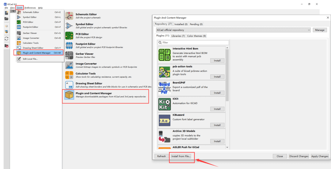 Just open the “Plugin and Content Manager” from the KiCad main menu and install the “PCBWay Plug-in for KiCad” plugin from the selection list. See as attached picture below.
