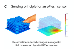 Researchers from the University of New York, working together in the E-flesh project, are bridging the gap between force-unaware and sensorless robot applications and aware grippers, hands and feet. The fun part is that you can easily make your own sensor: you need a hobby 3d printer, small off-the-shelf magnets and a magnetometer circuit board.