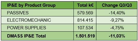 In Q3/2023 the European distribution market declined by 5.6% to €5.15bn. While semiconductors went down by 3.2% to €3.65bn, IP&E (Interconnect, Passive and Electromechanical) components declined by 11% to €1.5bn.