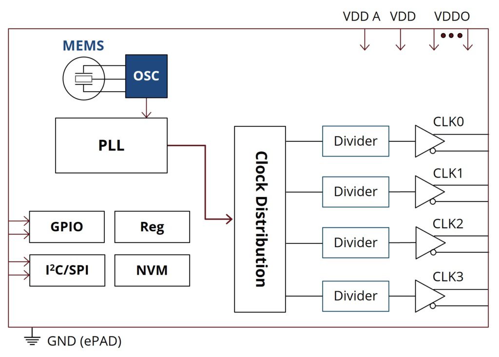 The SiTime Chorus Automotive clock generator is currently sampling in a 4 mm x 4 mm QFN package.