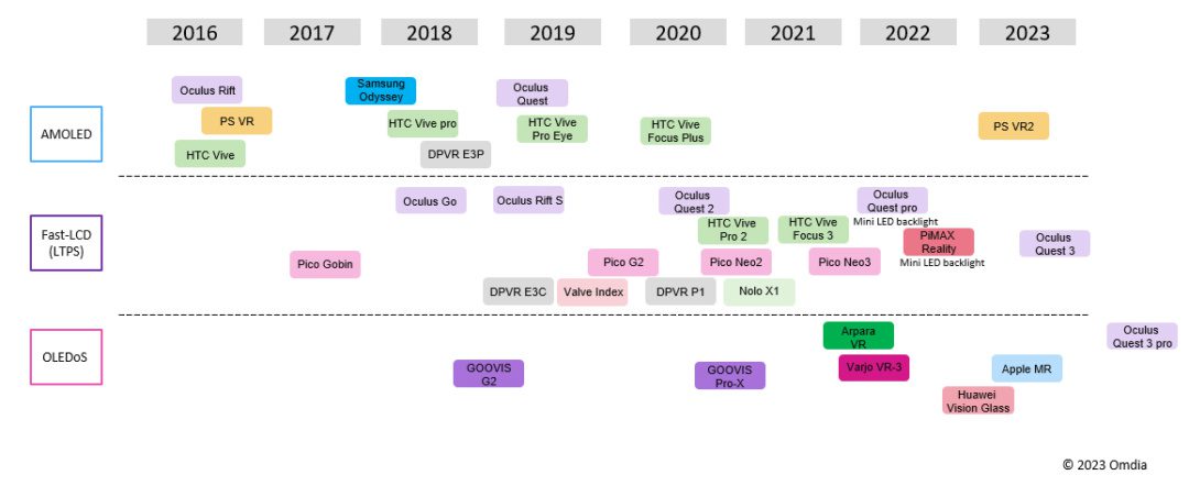 Figure 2: Trends in VR display technology adoption. Source: Omdia