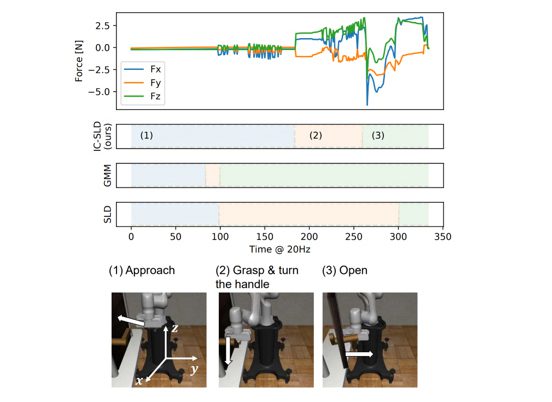 Figure 2: Segmentation results for the door opening task performed using IC-SLD and the conventional method. Quoted from Figure 4 of the accepted paper.