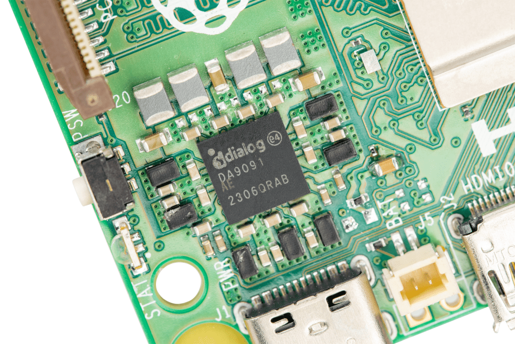 The DA9091 is the product of a multi-year co-development effort starting with Dialog Semiconductor in Edinburgh. “We were able to squeeze in two frequently requested features: a real-time clock (RTC), which can be powered by an external supercapacitor or a rechargeable lithium-manganese cell; and a PC-style power button, supporting hard and soft power-off and power-on events,” said Eben Upton, CEO of Raspberry Pi.