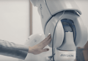 The skin’s sensitivity is independent of the contact region, meaning regardless where you come in contact with the AIRSKIN®, the robot will go into safety rated protected stop. This occurs with 5 Newtons. AIRSKIN® is equally effective for robots regardless of reach and payload.