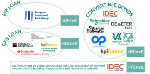 A convertible bond issue with financial partners Demeter FMET and the SPI investment fund (“Société de projets industriels”) operated by Bpifrance on behalf of the French Government as well as industrial partners Plastic Omnium, Sibayne-Stillwater, Groupe IDEC, Schneider Electric and Verkor employees are bringing several million euros of personal investment.
