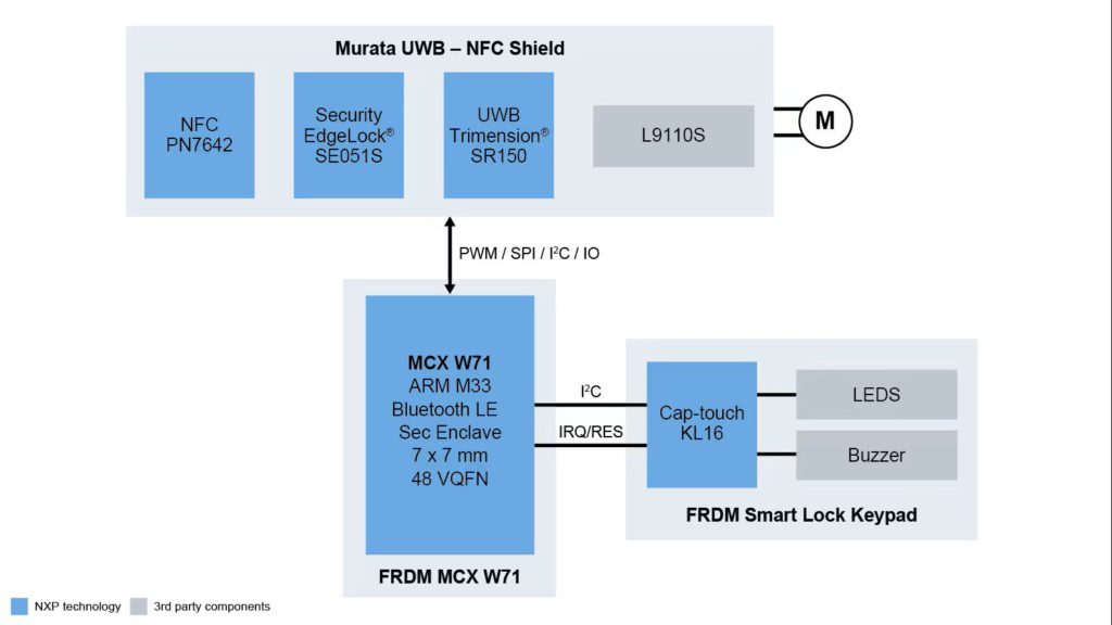 NXP is using its FRDM-MCXW71 development board with the MCX W7x wireless microcontroller for an Autonomous Secure Access reference design that supports Aliro. This uses a Bluetooth Low Energy radio and embedded secure enclave to support Matter and Aliro security requirements while an add-on Murata Arduino shield board includes the Murata Type 2JE module. This includes NXPs SR150 Trimension UWB product for hands-free access and a dedicated, closed system version of NXP’s PN7642 NFC controller with preloaded functionality for tap-and-go access which links to the MCX W7x as a plug-and-play component.