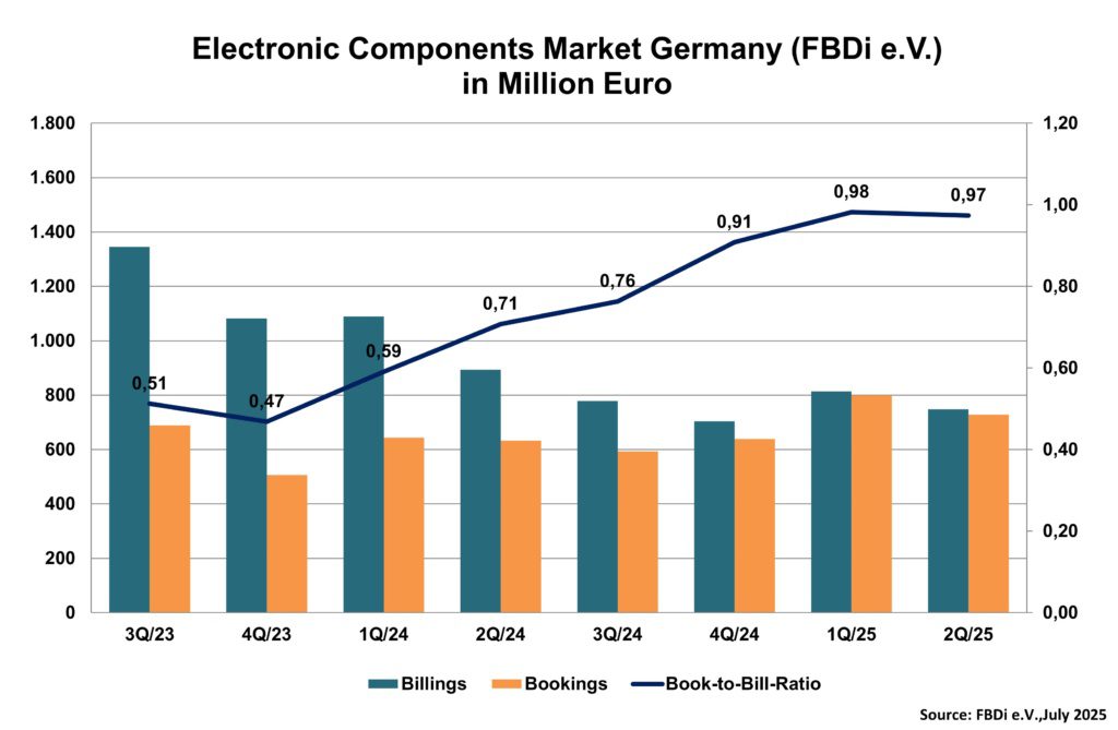 Le secteur allemand de la distribution de composants électroniques poursuit ses difficultés, avec une baisse des ventes de 8 % au deuxième trimestre et une diminution des commandes de 9 %